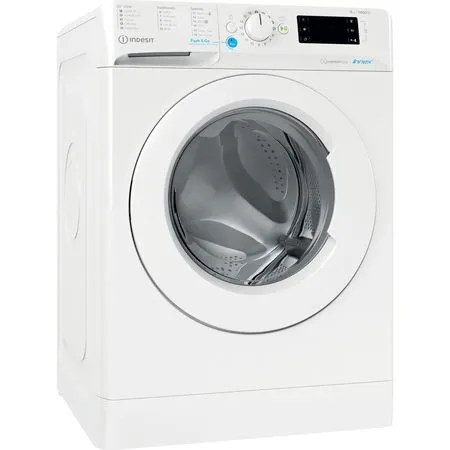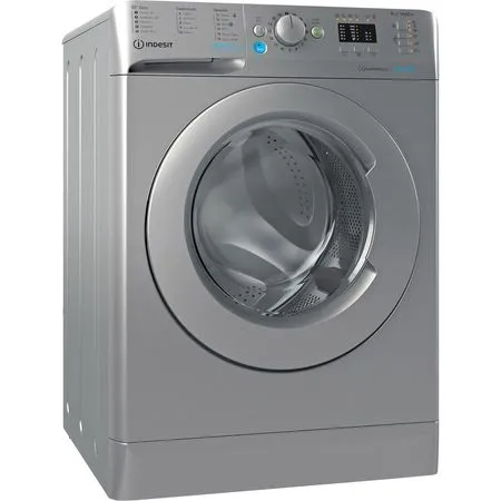 This Indesit freestanding front loading Washing Machine features: a spacious 8,0kg capacity. B energy rating. A fast, resource-efficient 1400 revolutions per minute spin speed. Silver colour.